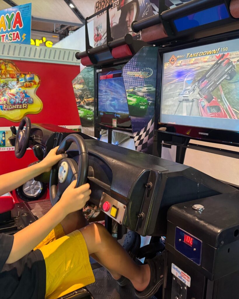 ゲームセンターで子どもたちも楽しめる。(日本だと1回100円だけど、チェンマイだと10バーツ(約45円くらい)からゲームできるのが嬉しい!)