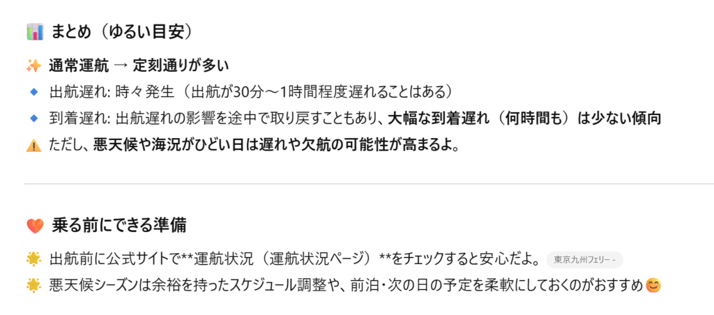 東京九州フェリーの遅延ってよくあるもの??